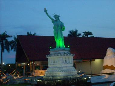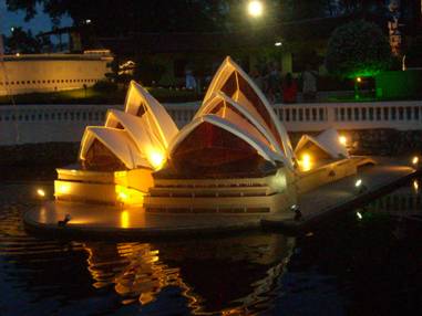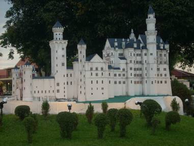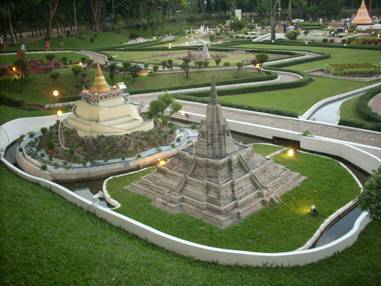 В этом парке Вы увидите миниатюры построек, служащих символами разных стран: Эйфелеву башню, Кельнский кафедральный собор, Биг Бэн и Тауэрский мост, пирамиду Хеопса, рядом с ней сфинкса, удивительные постройки современных мегаполисов. Экспозиция, посвященная России, открывается памятником защитникам Сталинграда – фрагментом мемориала в Волгограде. Неподалеку от него – копия собора Василия Блаженного на Красной площади. Здесь также можно посмотреть копии храмовых комплексов Бангкока, к примеру, храма Изумрудного Будды, и древних столиц Таиланда – Сукхотая и Аюттаи.