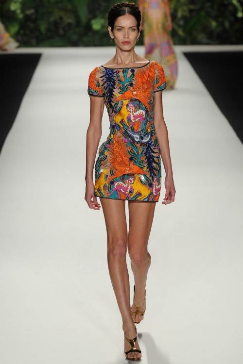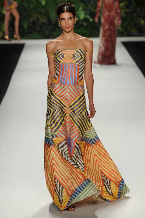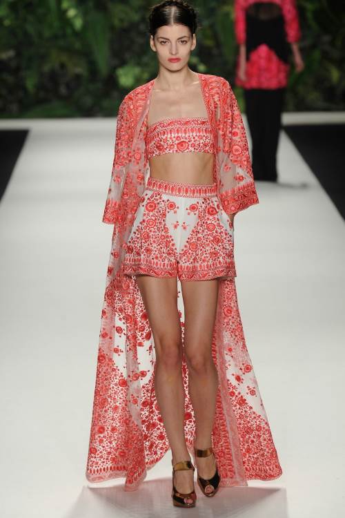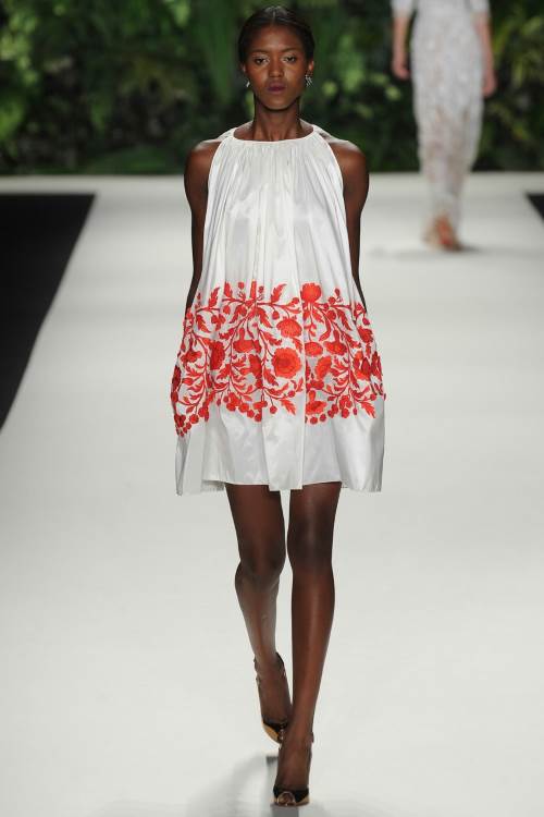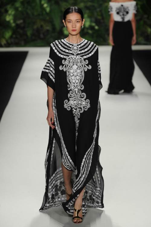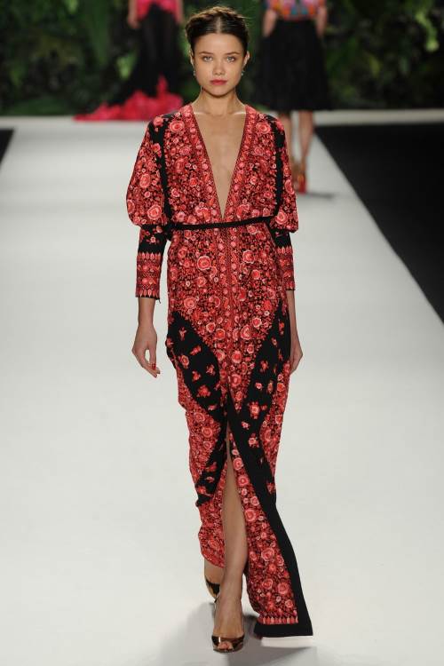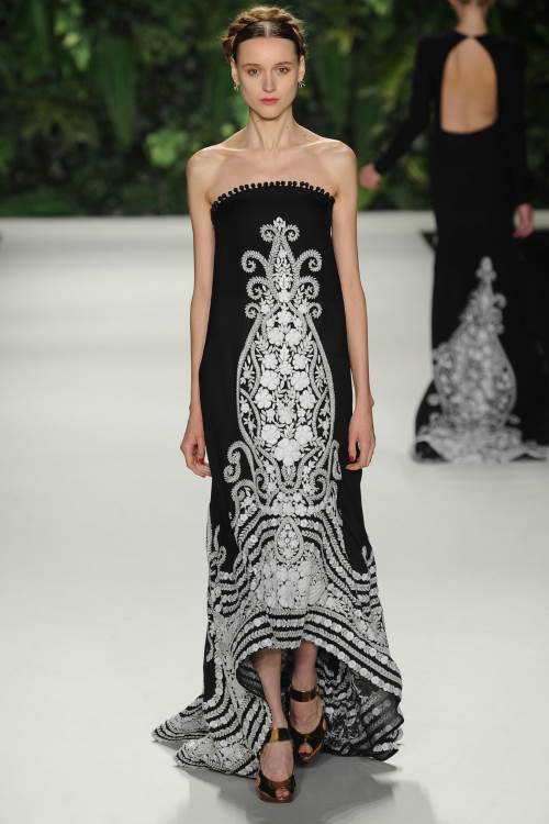 Naeem Khan в своей коллекции весна-лето 2014 в Нью-Йорке сделала акцент на национальных мотивах. Контрастность в сочетании цветов, яркий орнамент и кружевная вышивка, оплетающая фигуру сделали коллекцию по-восточному яркой и роскошной.