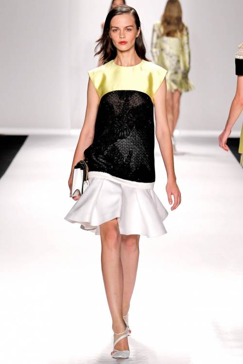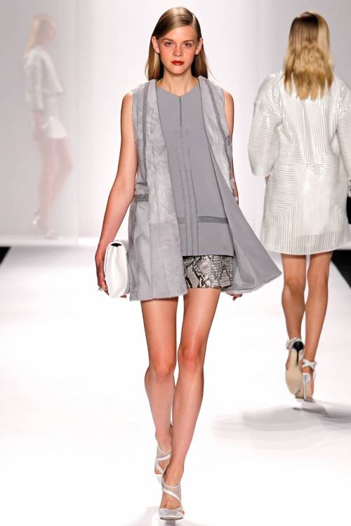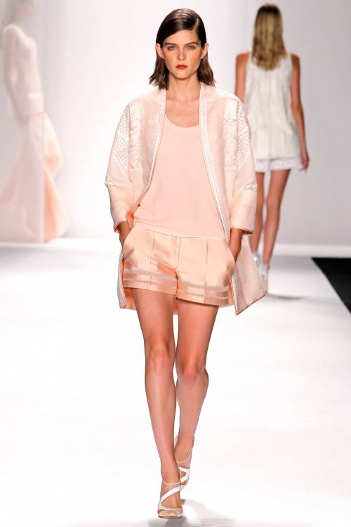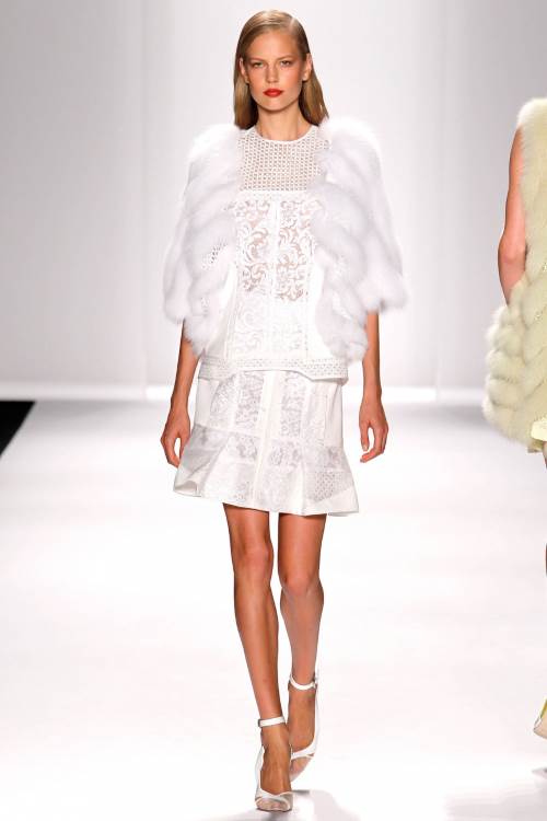 J. Mendel представил очень экспрессивную коллекцию в рамках недели моды весна –лето 2014 в Нью –Йорке. Лаконичные силуэты с использованием шелковых, летящих тканей и прозрачной сетки, декорирование мехом делают коллекцию очень динамичной.
