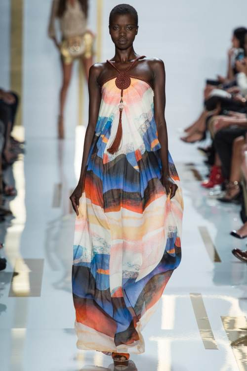 Diane von Furstenberg так же славится практичностью своих коллекций. На Нью – Йоркской неделе моды весна – лето 2014 она представила женственные образы сделав акцент на принт от классической клетки и ярких разводов по ткани до «звериной» расцветки.
