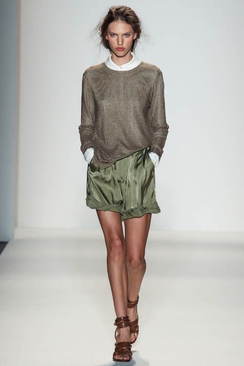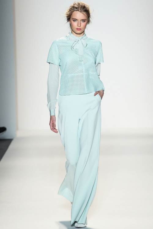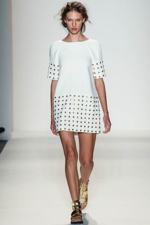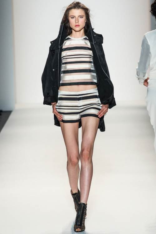 Rachel Zoeпоказала вполне практичную коллекцию на Нью - Йоркской неделе моды весна – лето 2014. В ее образах присутствуют все модные тренды этого сезона, такие как широкие короткие блузы, металлические заклепки, прозрачные и кружевные платья, принт в полоску.