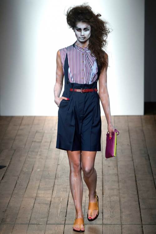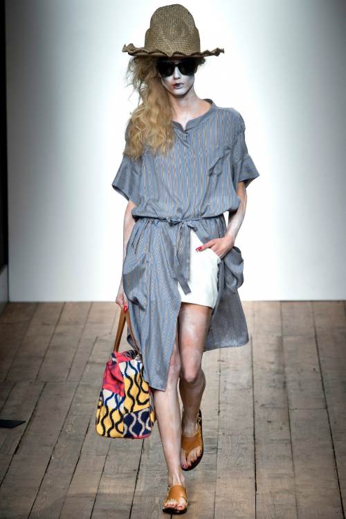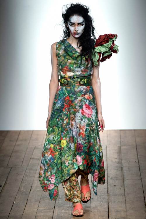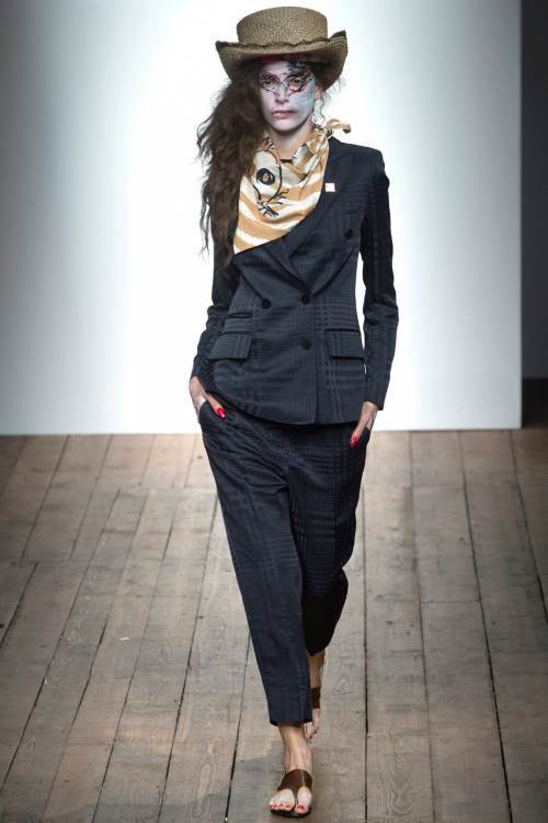 Королева панков Vivienne Westwood показала несколько гранжевую коллекцию Vivienne Westwood Red Label на Лондонской неделе моды весна -лето 2014. Небрежность костюмов, пестрые платья, сшитые как будто из лоскутов, мешковатость стиля дополнялось образами самих моделей, загримированных под зомби.