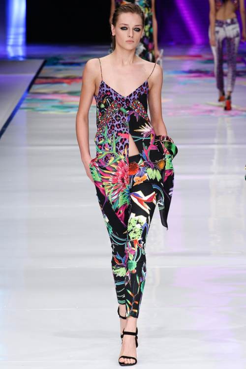 Бренд Just Cavalli на неделе моды весна –лето 2014 в Милане продемонстрировал жизнерадостные и легкие и несколько пляжные образы, не обойдя вниманием модный принт от яркой клетки до цветочной вариации на ткани.