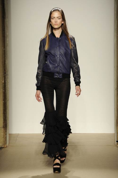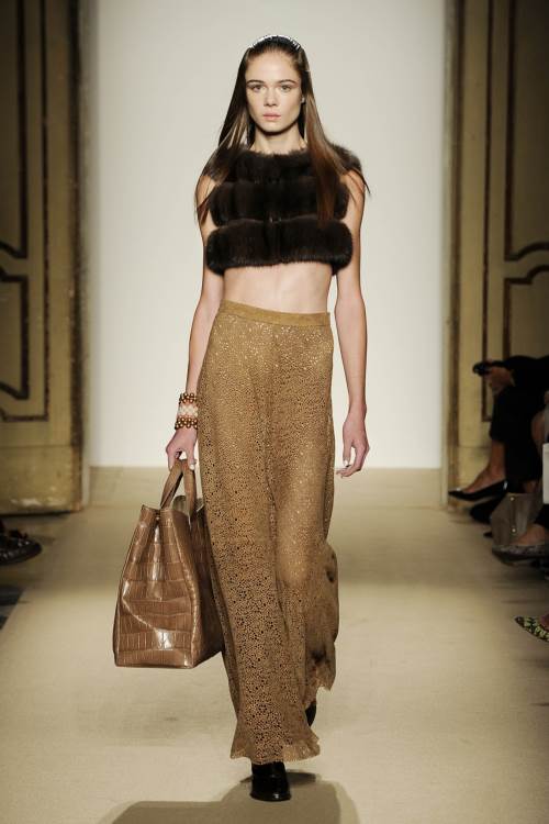 Simonetta Ravizza воплотила все модные идеи в своей коллекции на неделе моды весна-лето 2014 в Милане. Короткие и широкие меховые жакеты, хищные принты, деним и прозрачные юбки, расклешенные к низу брюки в стиле 70-х годов.