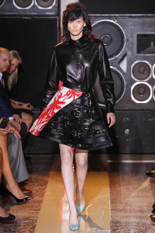 Emilio Pucci представил очень элегантную коллекцию на Миланской неделе моды весна-лето 2014. Облегающие платья и костюмы с широкими ремнями и массивными пряжками, прозрачная сетка в качестве декоративного элемента.