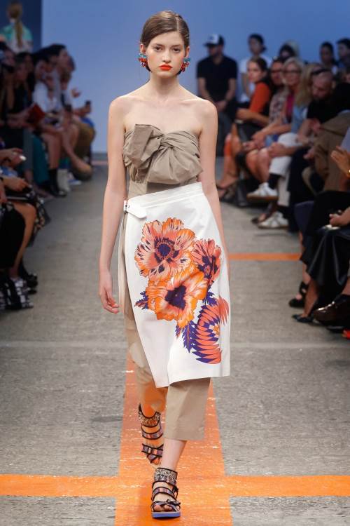 Fausto Puglisi сделал акцент на яркий принт в своей коллекции, на показе в Милане весна-лето 2014. Яркие, контрастные цвета платьев делят их как бы напополам или же акцентируют взгляд на отдельных деталях.