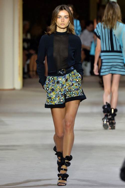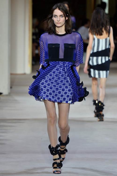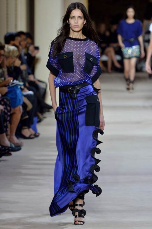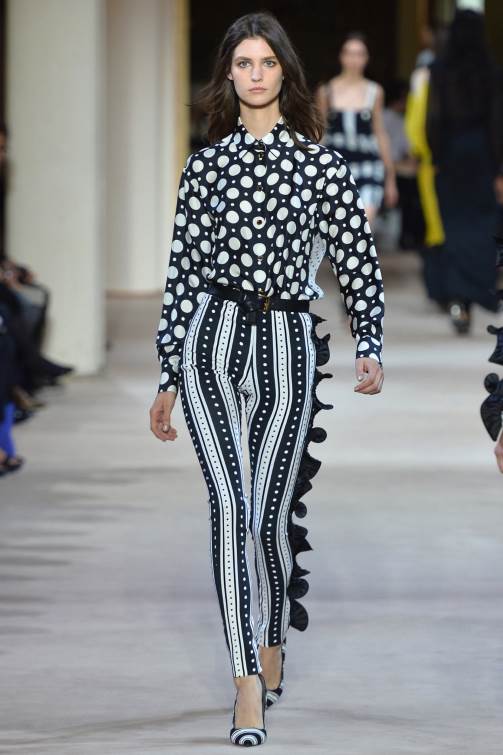 Emanuel Ungaro порадовал яркостью своей коллекции на показе весна-лето 2014 в Париже. Акцент сделан на контрасте, на сочетании полосок и «горохового» принта, яркая цветовая гамма перекликается с темными деталями.