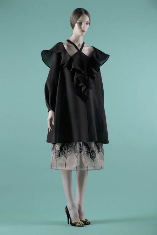 Vika Gazinskaya показе весна - лето 2014 в Париже продемонстрировала в своей коллекции широкий покрой в одежде, даже приталенные в поясе платья и костюмы выглядят объемно. Брючные костюмы напоминают пижамы, что весьма актуально в будущем сезоне. Принт на ткани присутствует, но очень умеренно. Основной акцент направлен на объемы и формы.