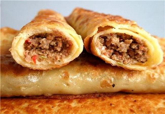 Тайские блинчики с зеленью и свиным фаршем.