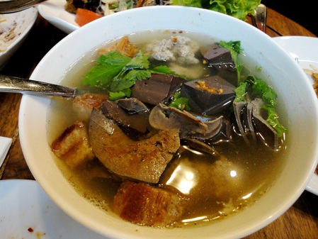 Освежающий тайский суп с луком и субпродуктами.