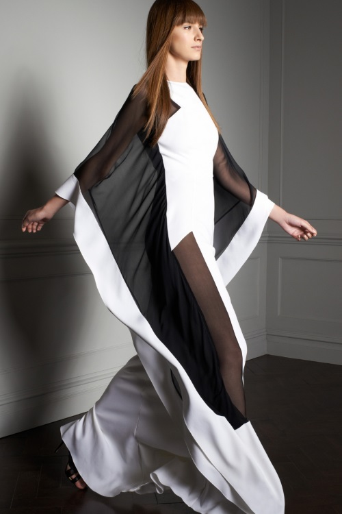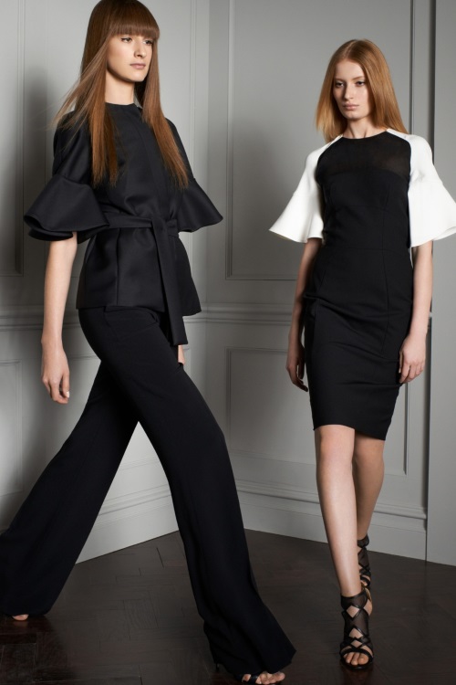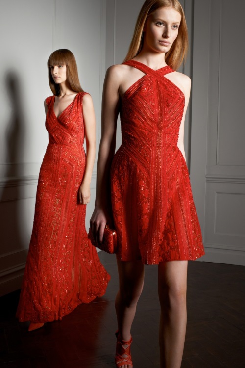 Elie Saab в круизной коллекции 2014 использовал только три цвета,белый,красный и черный. В силуэтах преобладают геометрические формы, разбавленные свободными юбками, рукавами и кардиганами.