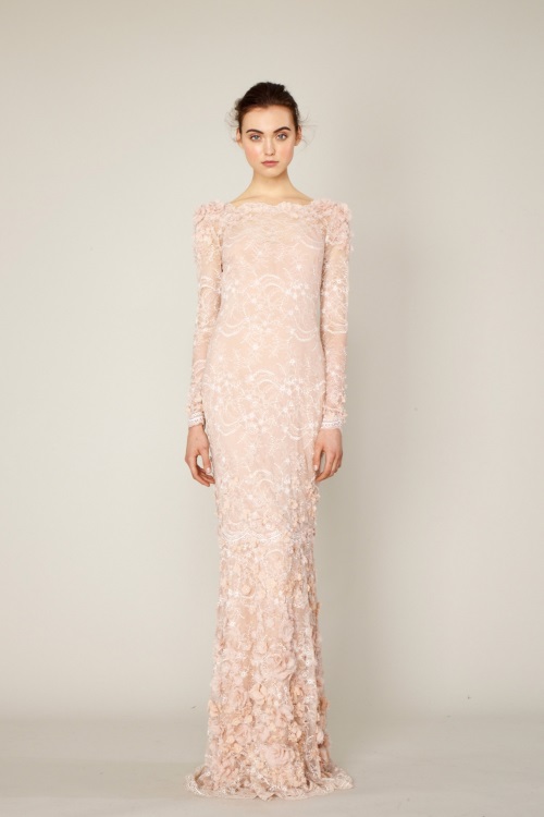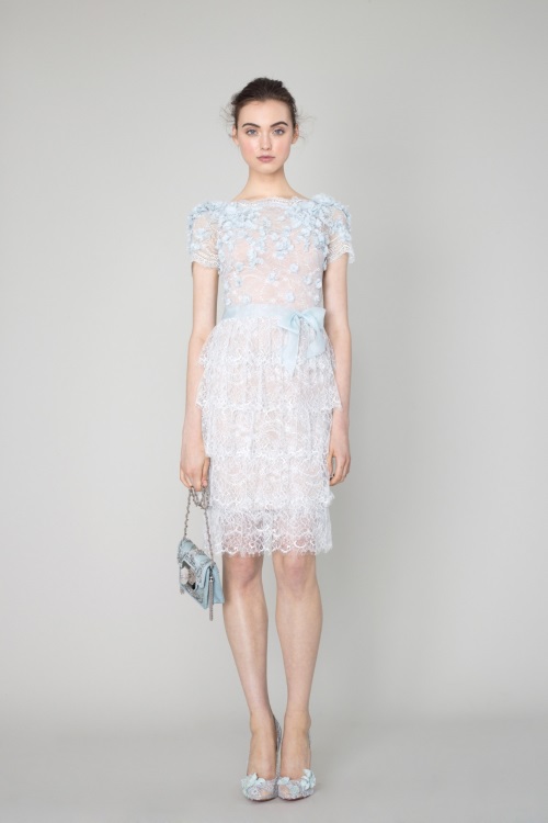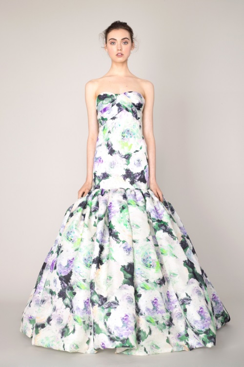 Бренд Marchesa в круизной коллекции 2014 остался верен себе. Женственность и изысканность, полупрозрачные платья с пышными юбками, декорированные бантами , нежный цветочный принт.