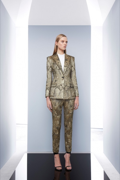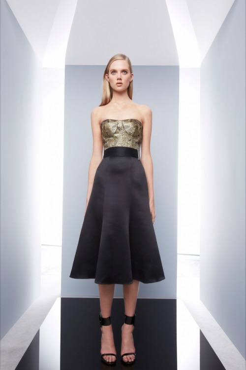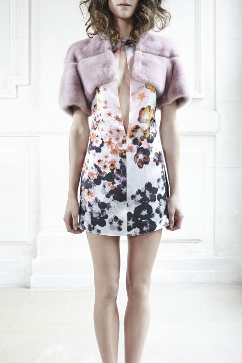 Приталенные силуэты, обтягивающий крой и всевозможные детали от меховых розовых и кожаных цветов на корсажах, до всевозможных вырезов, ярких принтов и цветочных аппликаций на платьях, представил в круизной коллекции 2014 модный дом Azzaro.