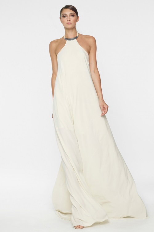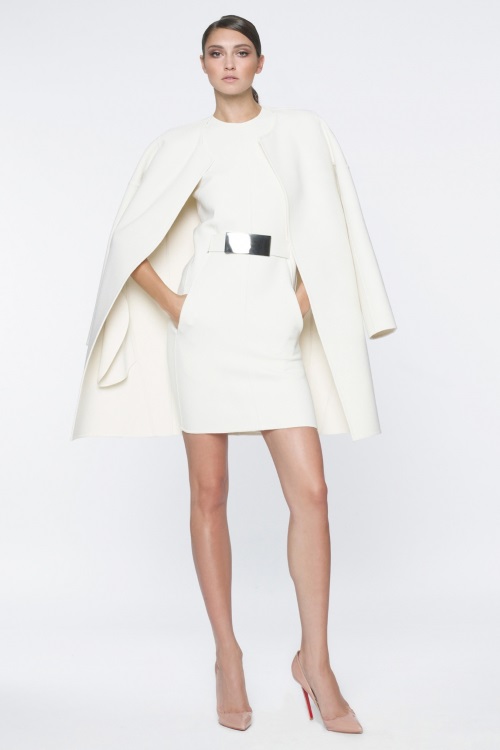 От изысканно- белого до золотых и пастельных тонов. Четкость силуэтов, как в приталенных,так и в свободных платьях.Ничего лишнего,все элегантно, просто в круизной коллекции 2014 бренда Kaufmanfranco.