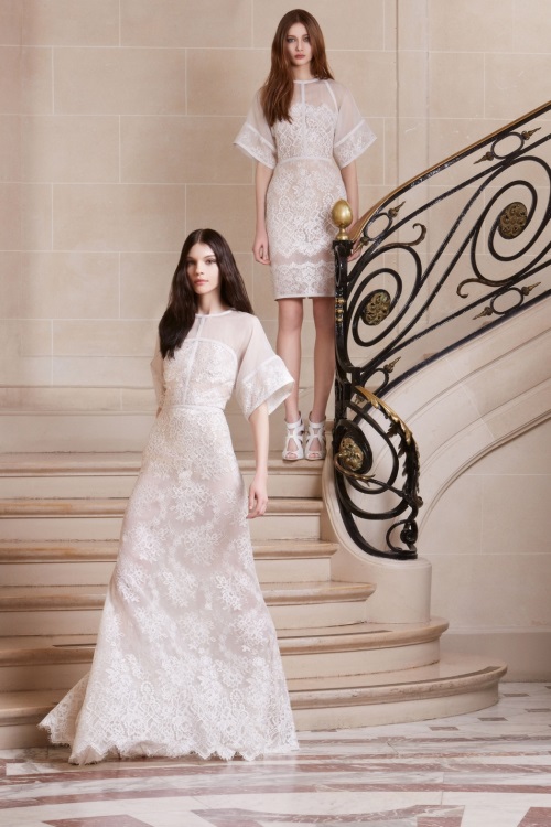 Блеск и изысканность, женственность и утонченность, классические однотонные цвета, практически без использования принтов. Кружево, подчеркивающее фигуру, меховые пальто и жилеты представил Elie Saab в своей коллекции Осень-Зима 2014-2015/Pre-Fall.