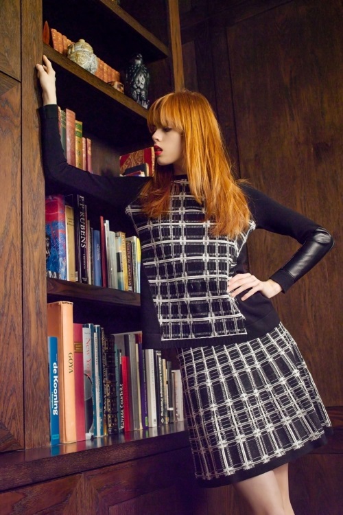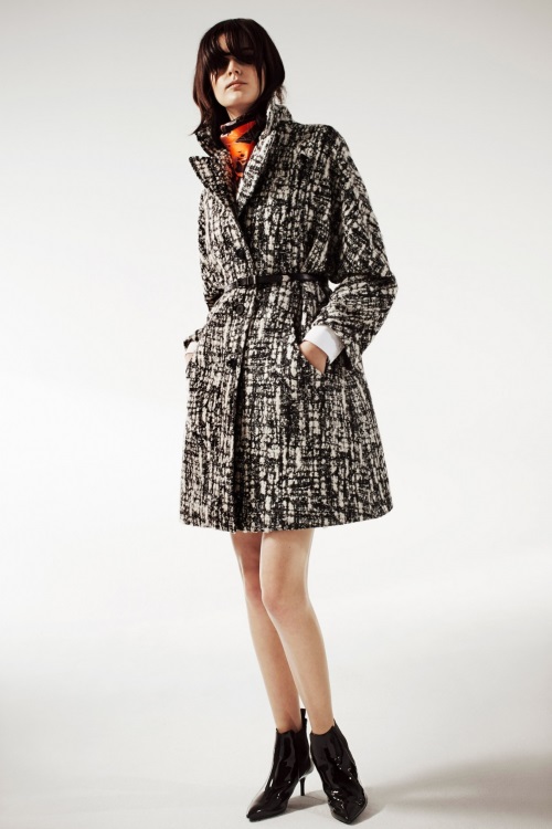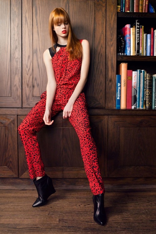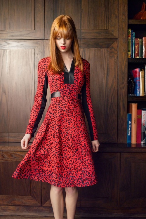 Спокойные деловые костюмы и яркие, по девичьи милые, платья. Уже ставшие классическими цветочные и гороховые принты, а так же принты в клетку . Как дополнение кожаные вставки на рукавах, поясе и декольте представила Nanette Lepore в коллекции Осень-Зима 2014-2015/Pre-Fall.
