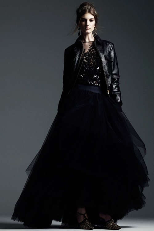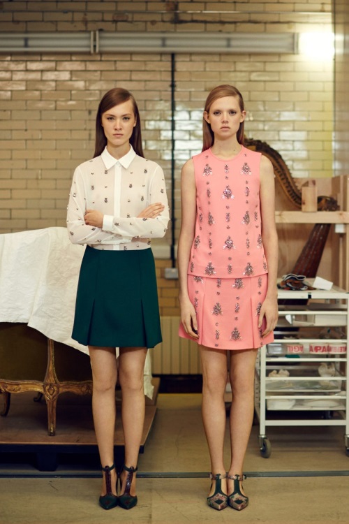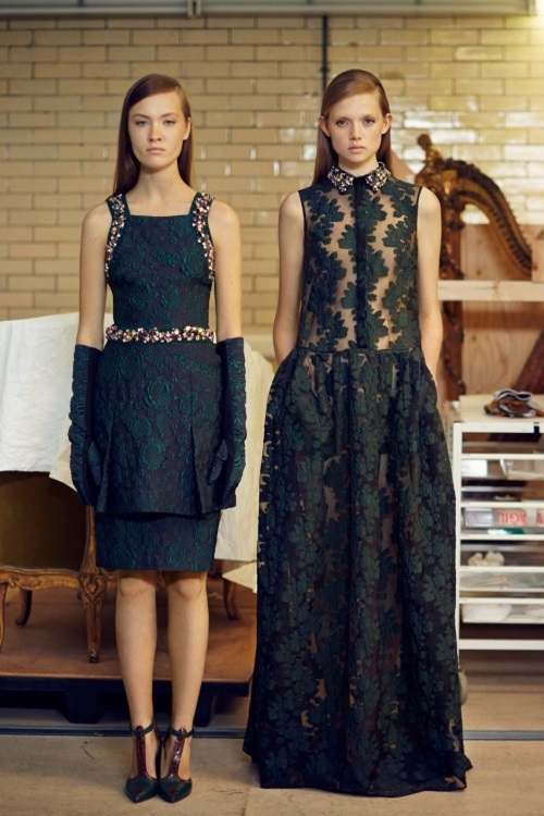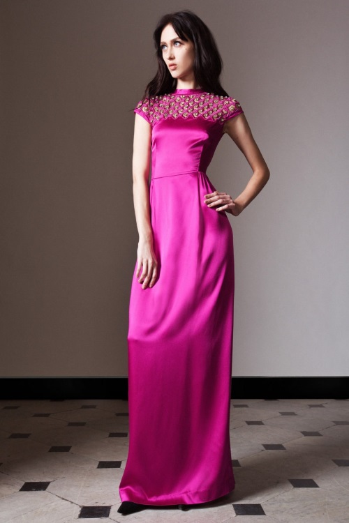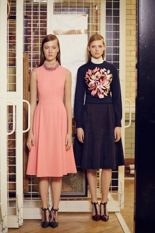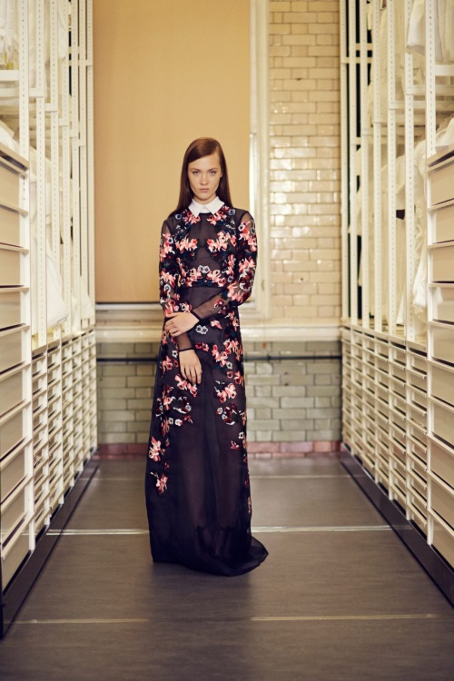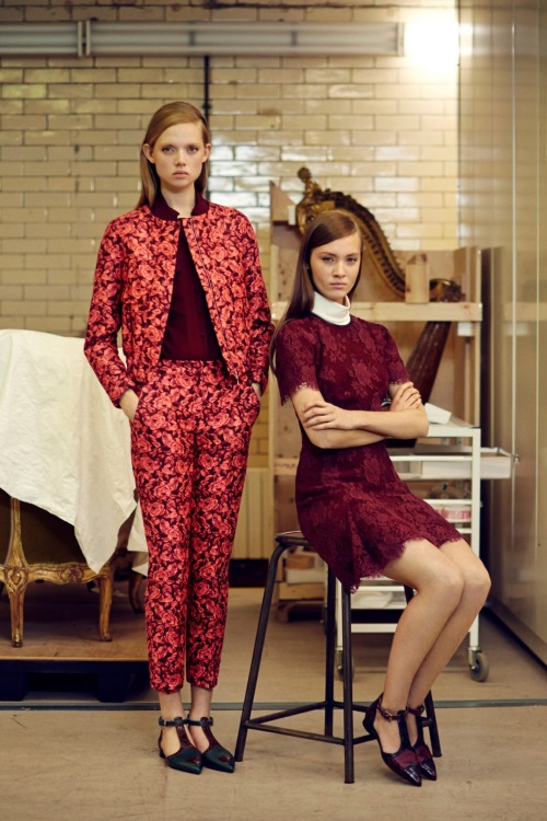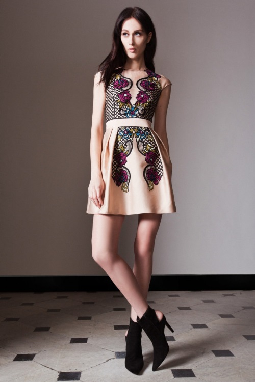 Temperley London в коллекции Осень-Зима 2014-2015/Pre-Fall показала подчеркивающие фигуру силуэты, витиеватые и яркие принты, сетку как элемент декора.