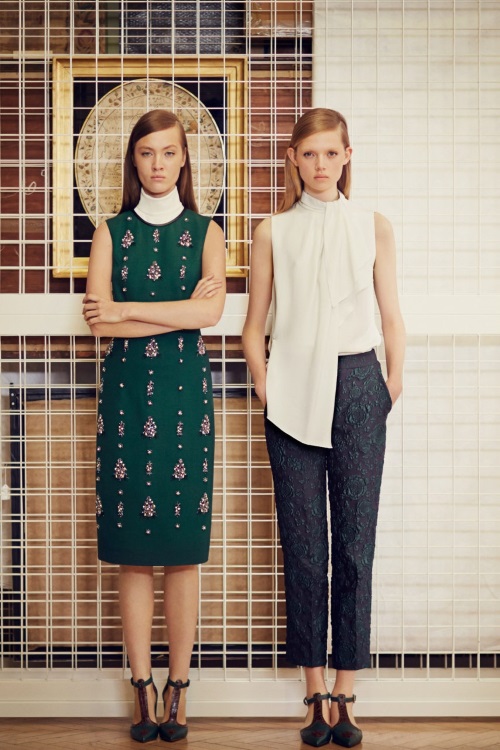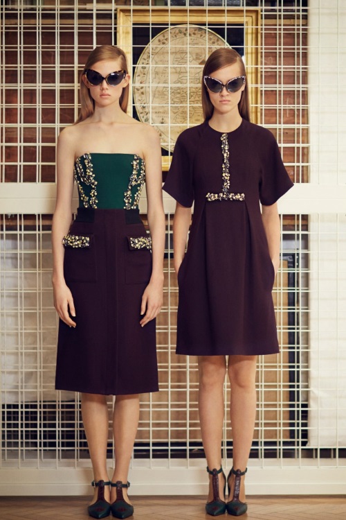 Весьма оригинальную коллекцию представил бренд Erdem в коллекции Осень-Зима 2014-2015/Pre-Fall. Геометричность линий, разнообразная фактура платьев и костюмов, необычное сочетание цвета и принтов.