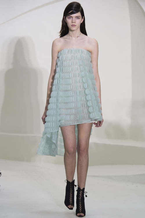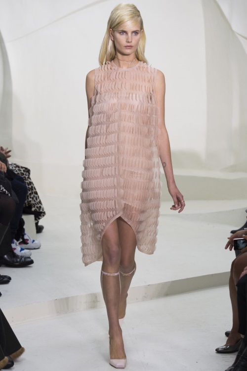 Christian Dior в коллекции COUTURE ВЕСНА-ЛЕТО 2014 представил легкость силуэтов, создающиеся за счет перфорированной ткани. Ставшие трендом А-образные силуэты и удлиненная задняя часть платья, свободные жилеты и кардиганы с цветочным принтом и декоративные элементы в виде вставок.